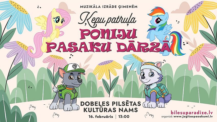 Muzikāla izrāde ģimenēm “Ķepu patruļa Poniju Pasaku dārzā”.