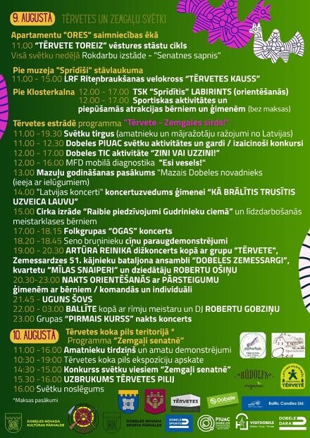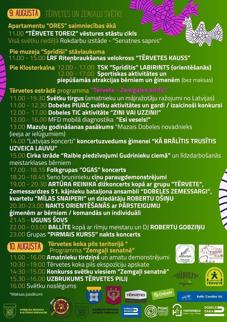 Visplašākā svētku programma tiek piedāvāta 9. augustā, kas norisināsies gan Tērvetes koka pils teritorijā, gan Tērvetes estrādē un apartamentu “Ores” stāstnīcā.